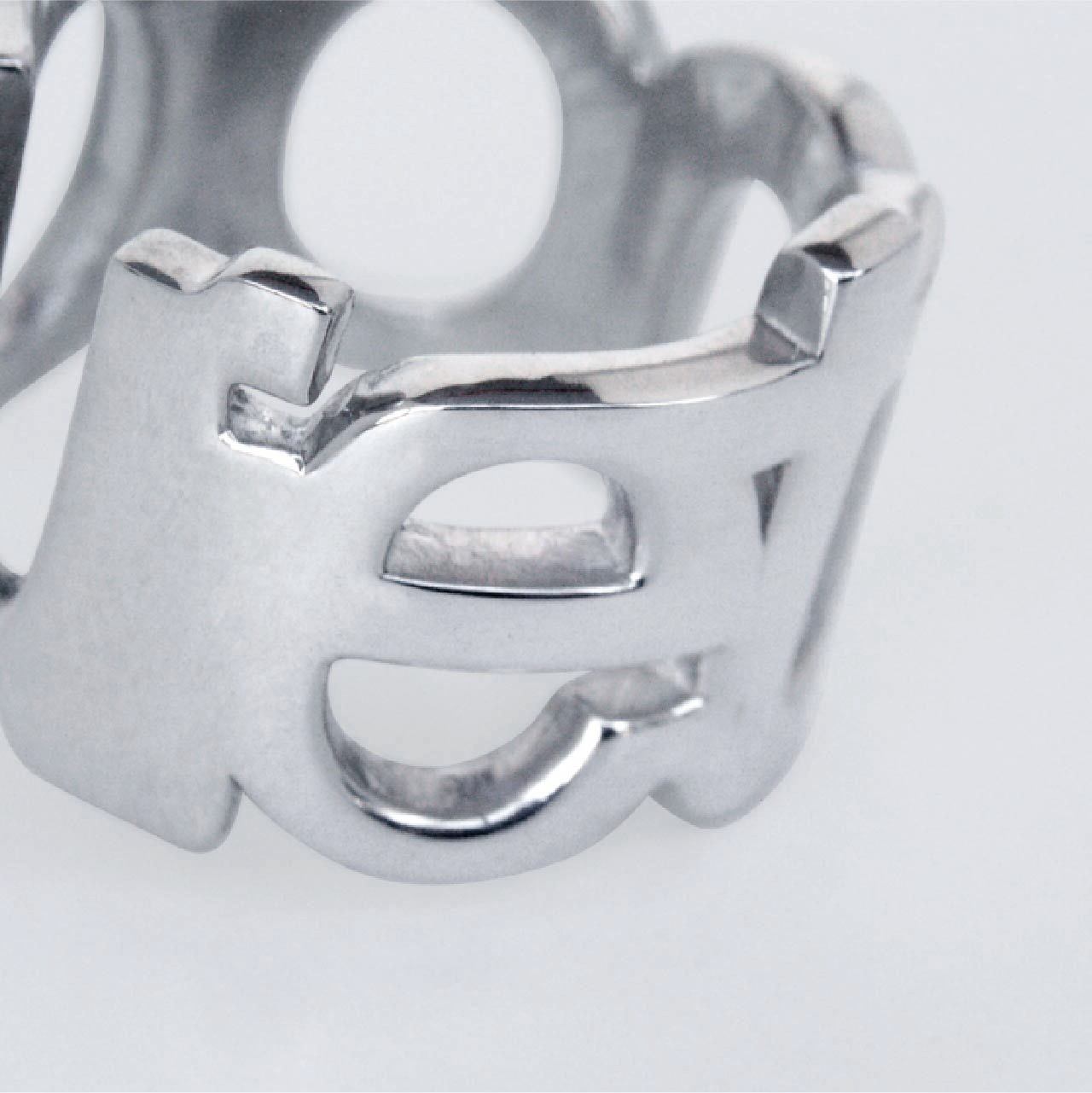 no quiet のロゴをモチーフに、文字を一周させてリングに仕上げました。